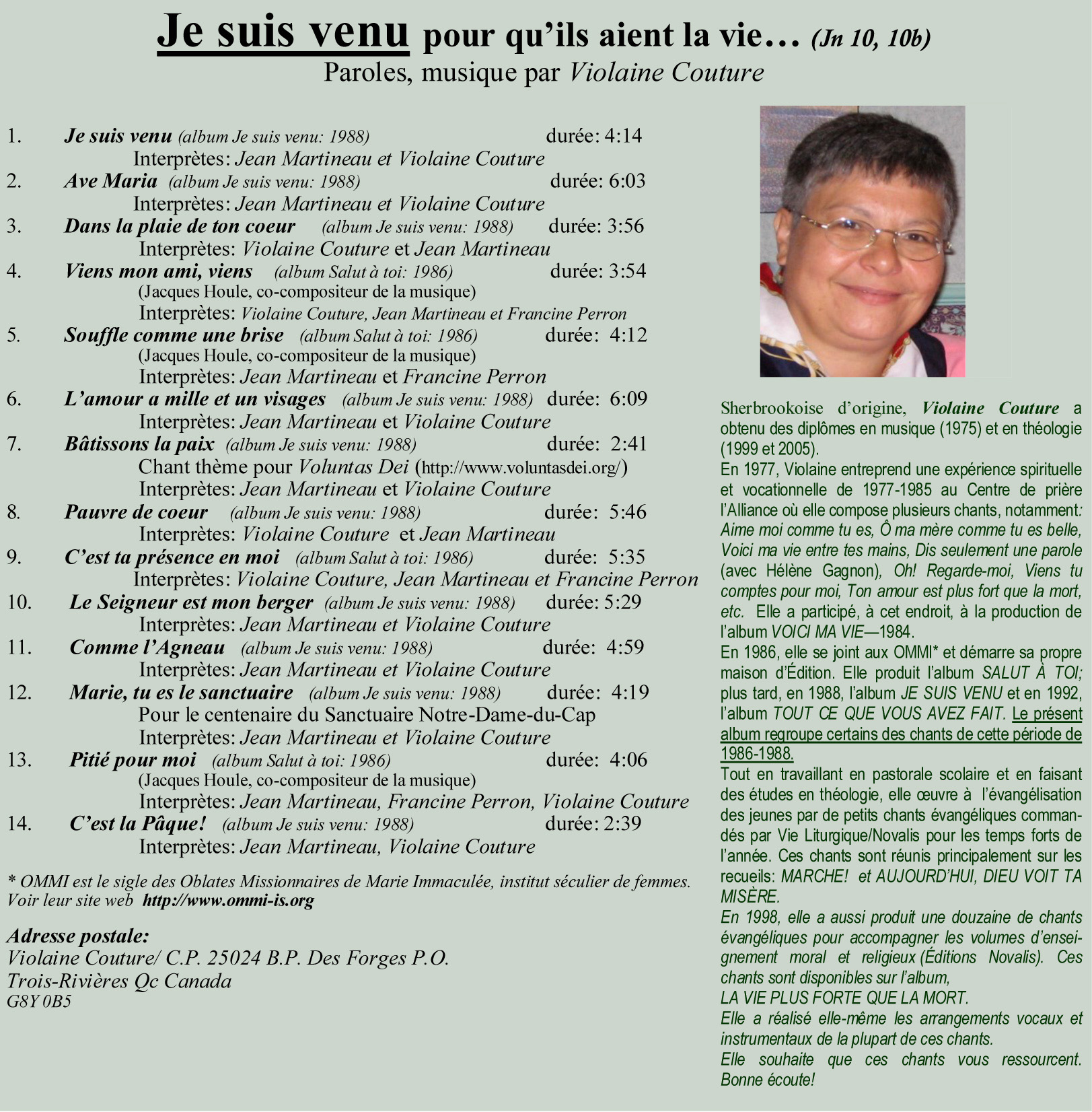 Si vous désirez acheter le CD-ROM, contacter Mme Violaine Couture par courriel violainecouture@hotmail.com. Elle communiquera avec vous au sujet du coût incluant les frais d’expédition. CLIQUEZ ICI